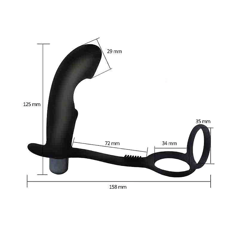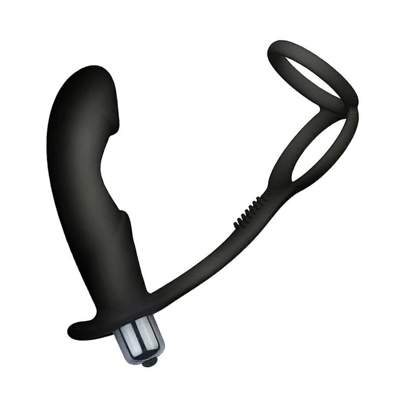 Vibrador de próstata com anel peniano duplo, 10 modos de vibração, o produto é macio ao toque ergonômico,